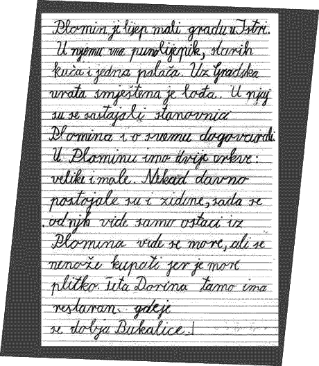 Ovaj sastavak napisala je djevojčica (3.razred) koja pati od disleksije. Gornja animacija je rađena po njezinim uputama. Kada čita, ona otprilike ovako vidi tekst. Kretanje teksta je individualno, nije isto za sve osobe s disleksijom.